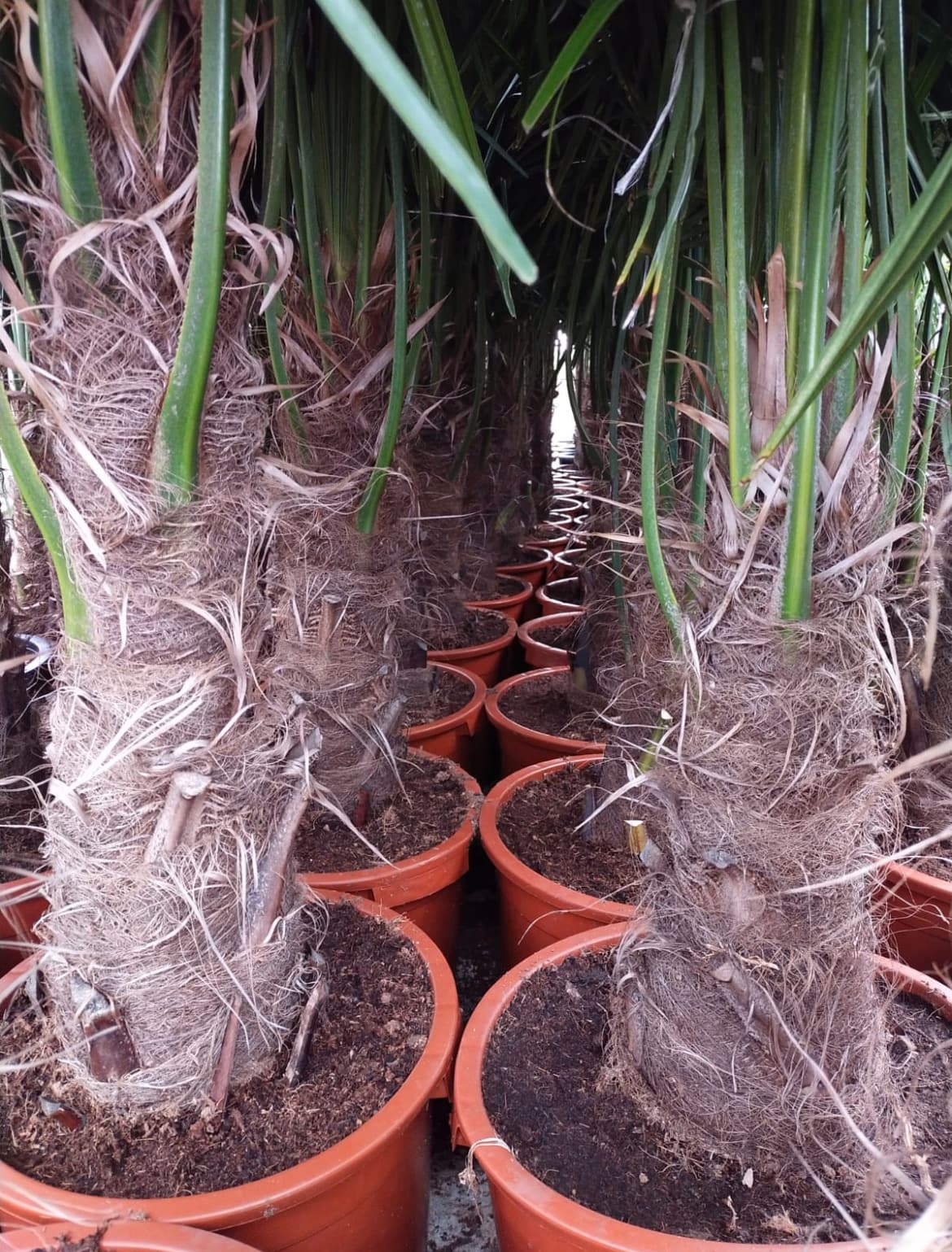 • Bajo mantenimiento: Las palmeras Trachycarpus son relativamente fáciles de cuidar. Requieren riegos regulares, especialmente durante los primeros años de crecimiento, y es importante mantener el suelo bien drenado. También es recomendable protegerlas de vientos fuertes, ya que pueden dañar sus hojas.